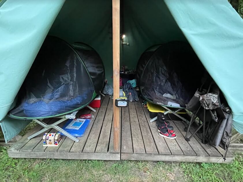 Pop-up camping tents are becoming more popular with casual campers and now even accepted by the experts. Add a cot and you’re almost glamping! A pop-up camping tent on a cot provides convenience plus the luxury of being off the ground. Camping on cots in army-style, open-air, canvas tents on wooden platforms is the norm at most Scouting America summer camps. However, what size should the tent be relative to the cot?