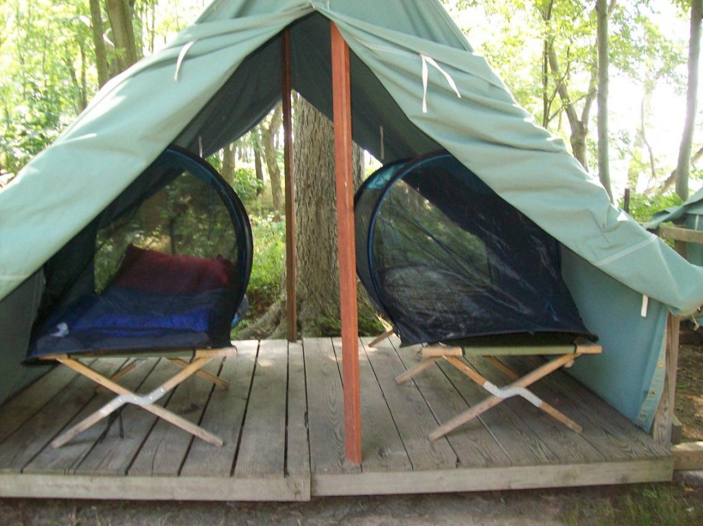“Here are some photos of the SansBug pop-up mosquito nets on cots in a boy scout canvas wall tent. My son and two other boys used SansBug (1-person) tents on this trip to Rodney Scout Reservation in Maryland last week. Camp Rodney is located on the Chesapeak. The ‘permanent’ canvas scout tents are filled with spiders. The SansBug fit very well on the cots inside the platform tents and did an excellent job keeping the boys bug-free! All three boys were thankful to have the SansBug, they all agreed it made their stay at camp much more enjoyable without the worry of having any critters bothering them in the middle of the night.